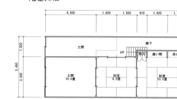 道側の10畳の部屋ですが、土間ってありますけど板張りになっています。